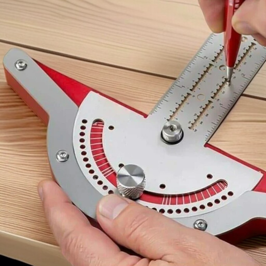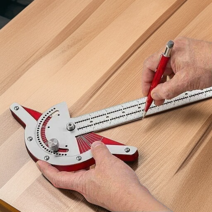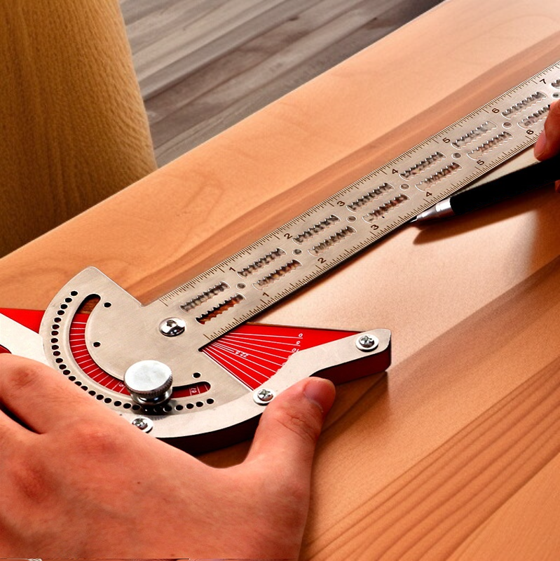高精度な角度測定が可能な木工定規。インペリアル・メトリック両対応で多用途に活用。耐久性と携帯性に優れ、木工設計に最適。