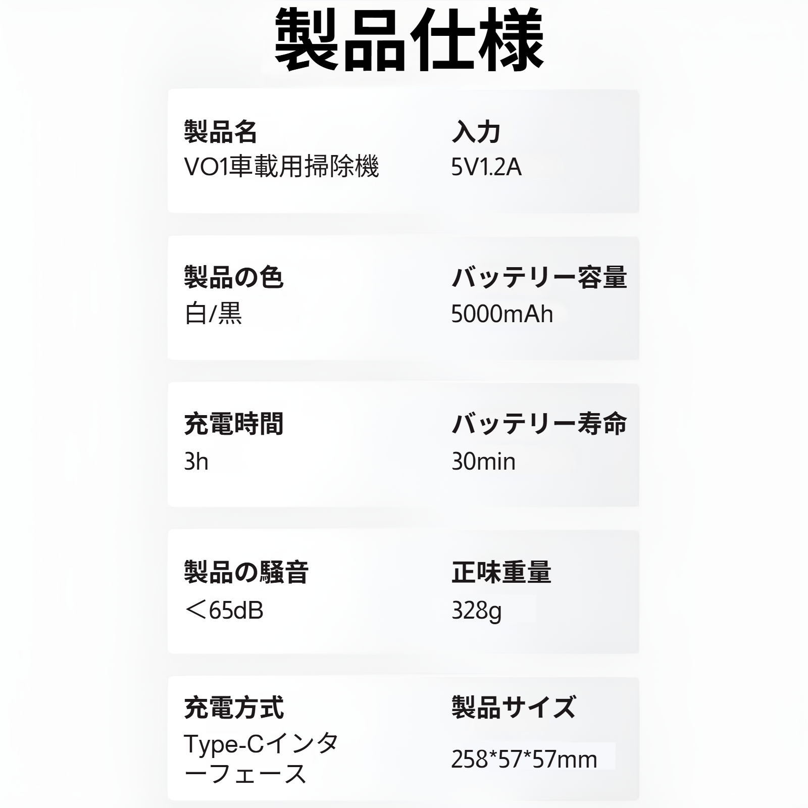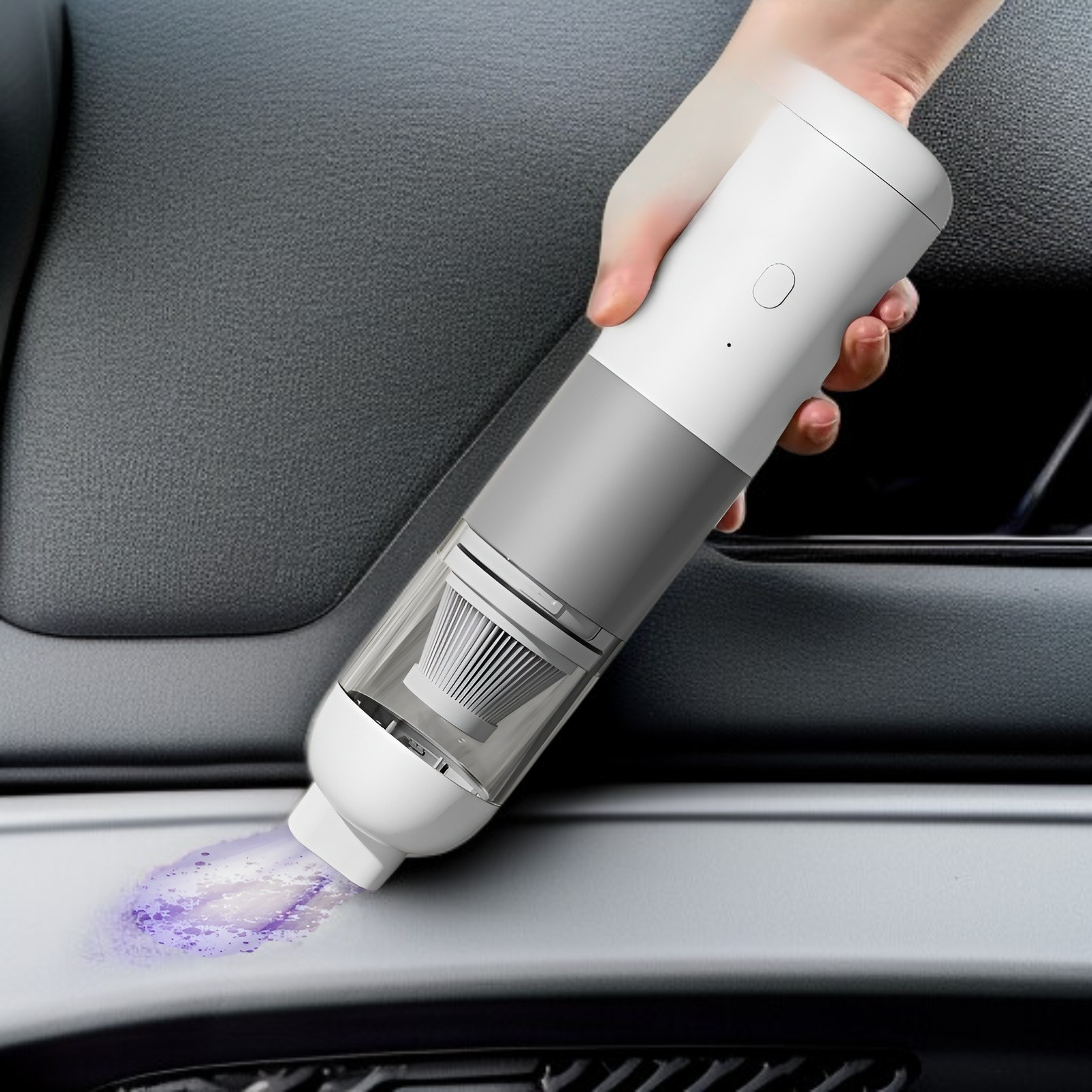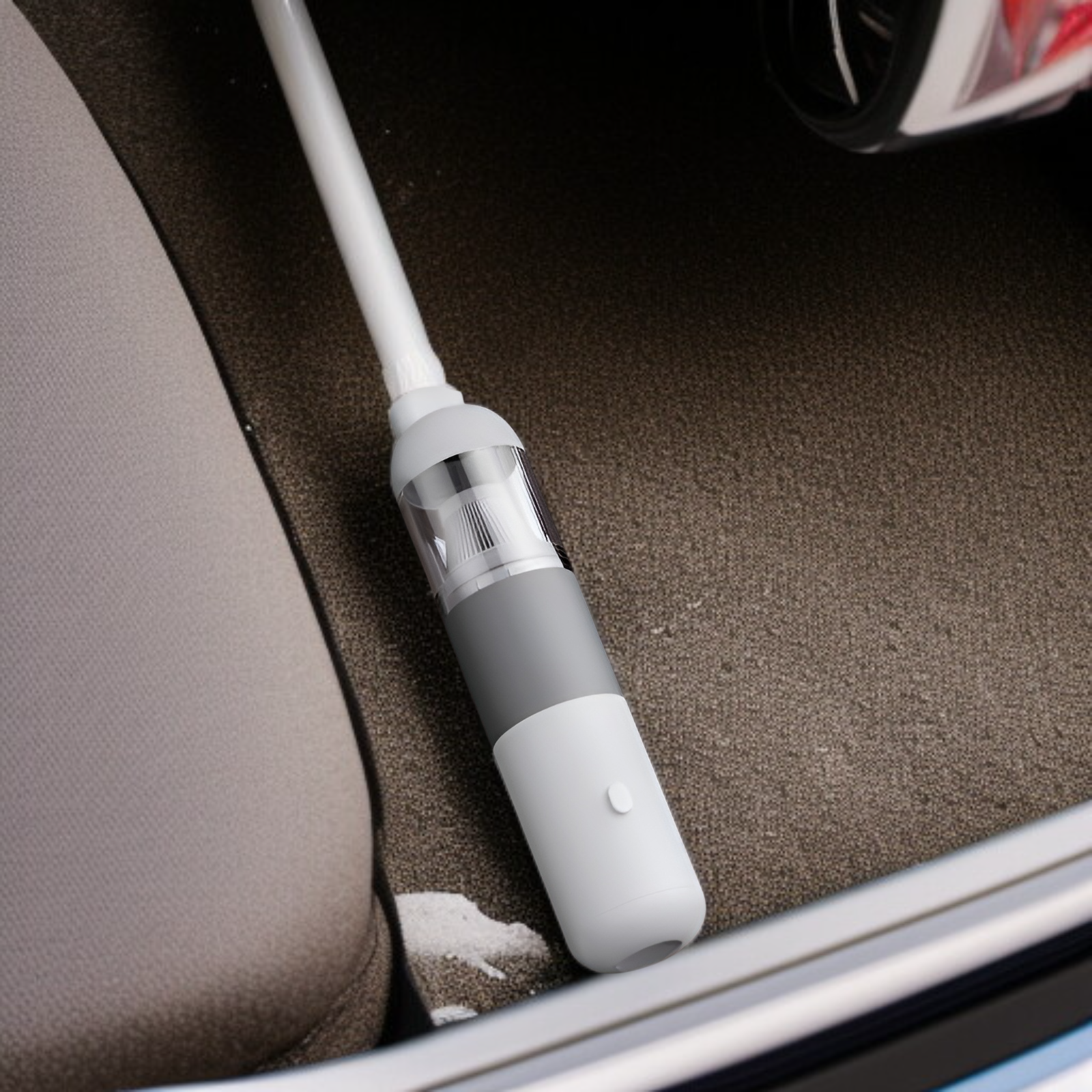 車内のゴミや埃を強力吸引、吹き飛ばし機能付き。コンパクト設計で持ち運び簡単。高出力で多用途に使える車用掃除機。